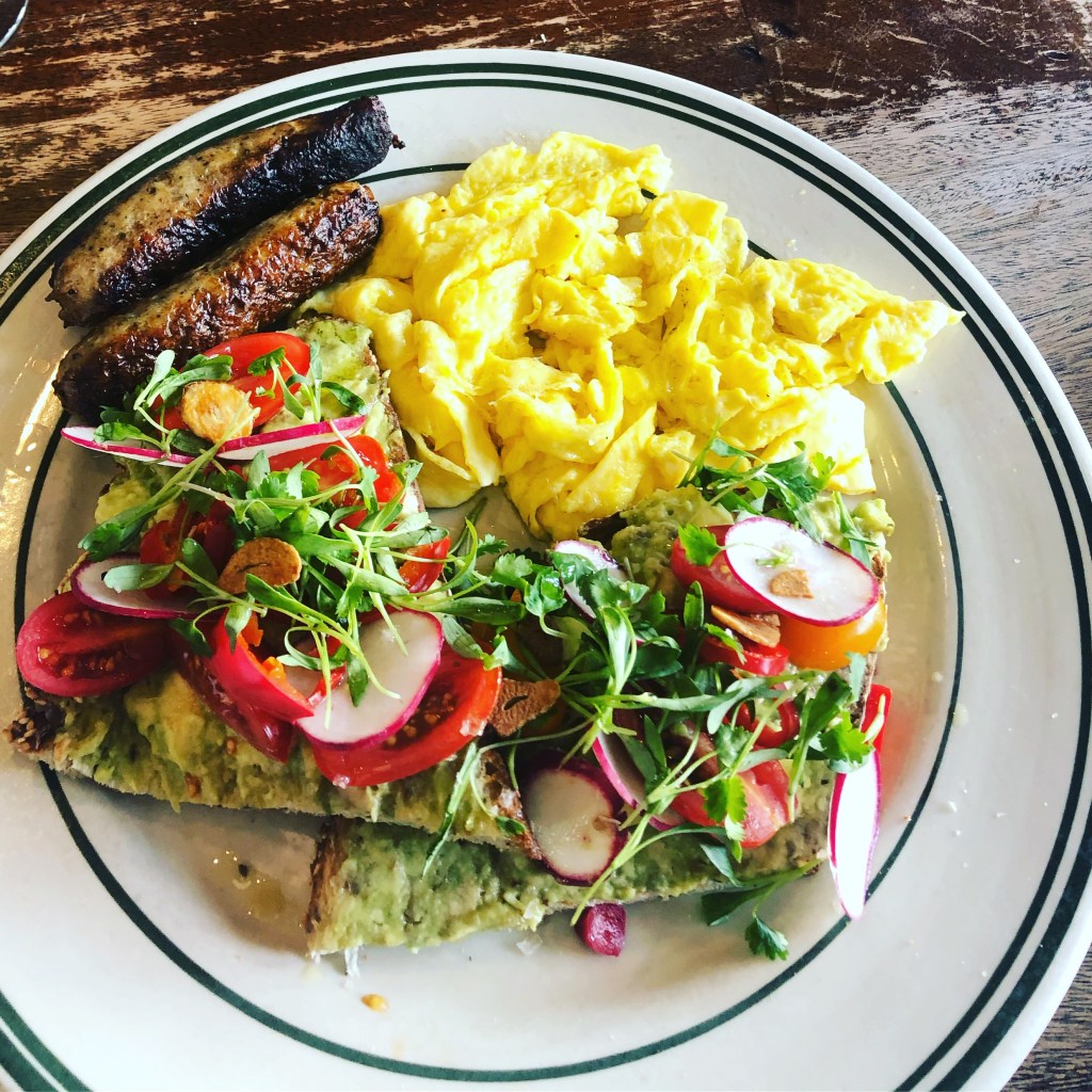 Let me start off by saying that this is one of my favorite places to come to when I want a large variety of items to choose from. Ted’s Bulletin has an all day breakfast menu which is fantastic for those that are brunch lovers. I’ve been here three times and I’ve ordered the same thing each time! The avocado toast, which is topped with radishes, micro cilantro greens. It typically comes with poached eggs, but I always get my eggs scrambled and add a side of chicken sausage.
